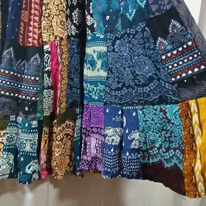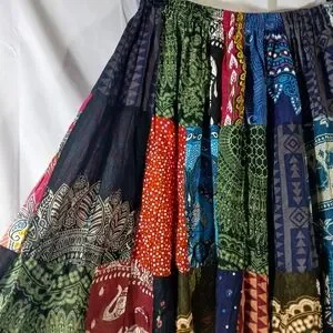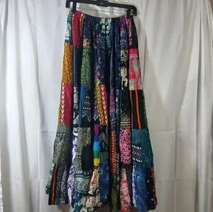 Womens Patchwork Long Maxi Peasant Skirt Boho Heavy Hippie Gypsy Colorful