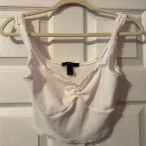 Forever 21 White Ribbed Tank Top with Lace Trim