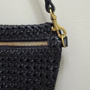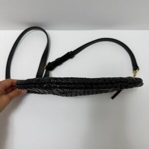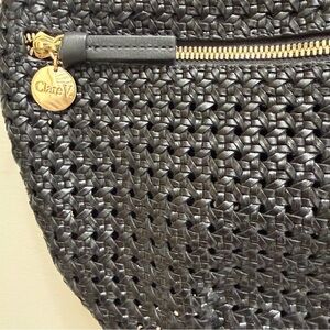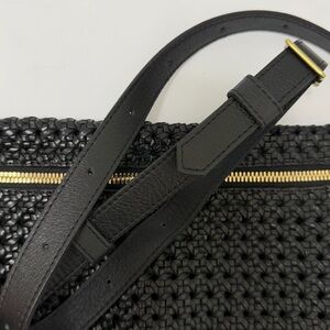 Clare V. Grande Rattan Woven Leather Belt Bag Crossbody Shoulder Bag Black