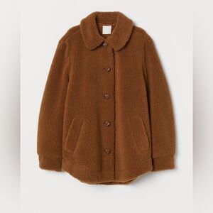 New With Tags - H&M Teddy coat in Size 2. Oversized. P2P 20.5” Button front Lined Extra button included. Retails $69.99