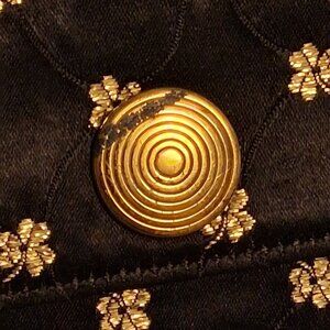 The LIN*BREN Vintage 1950s Black & Gold Satin Brocade clutch evening bag is a rare and original piece of vintage jewelry for women. Made in the United States, this clutch exudes a classic and elegant style perfect for eveningwear occasions. The black and gold color palette adds a touch of sophistication and glamour, making it a standout accessory for any outfit. Crafted with satin material, this clutch is sure to add a touch of luxury to any ensemble. Measures over 8 inches long