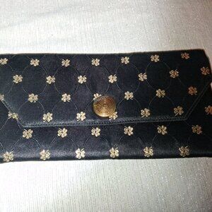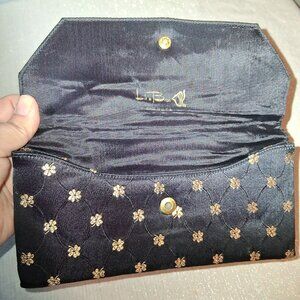 LIN*BREN Vintage 1950s RARE Black & Gold Satin Brocade clutch evening bag USA