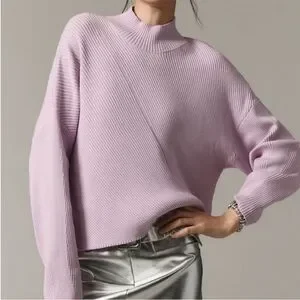 Chic lavender turtleneck sweater by Maeve. Features ribbed texture and relaxed fit. There is some very minor pilling and a small mark at one sleeve that is barely visible.