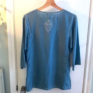 Old Navy 100% silk swim coverup, v-neckline with 2 buttons, embroidery, 3/4 sleeves, side slits, lightweight and comfortable, in great preowned condition, no flaws.