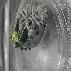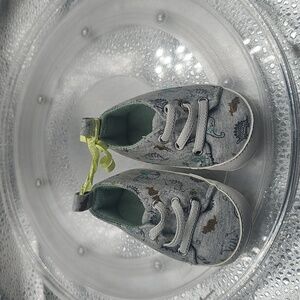 child of mine brand of shoes gray canvas with dinosaurs