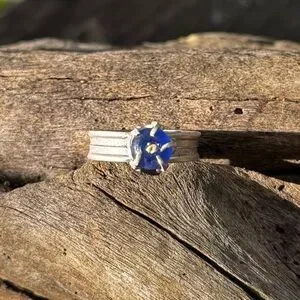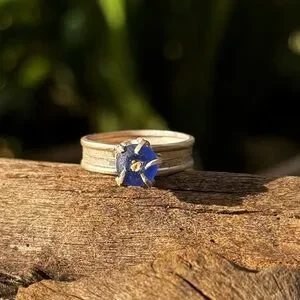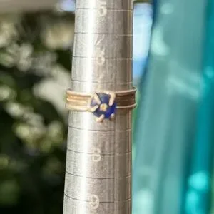 Unique blue sea glass with sand stuck sterling & fine silver thick band crown