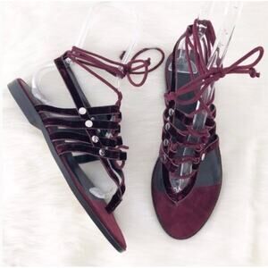 Rebecca Minkoff Evonne Wine Red Purple Velvet Laceup Gladiator Style Sandals Excellent Condition- May have been store tryons. Size 7.5.