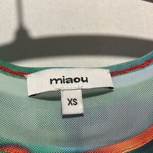 Maiou Billie Bodycon dress in a bright infrared like pattern. Short slits up either side. Pull on style. Some stretch. No callouts to note.