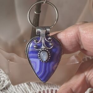 Purse Charm or Key Chain or Pendant, Purpleish Bluish Gemstone in Silver Tone
