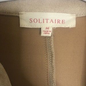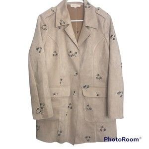 Anthropologie Solitaire Tan Embroider Floral Faux Suede Blazer Jacket in GREAT CONDITION, no signs of wear! Size Medium Back armpit to armpit 21 Back collar to hem 32 Shoulder seam to cuff 23 All measurements are approximate.