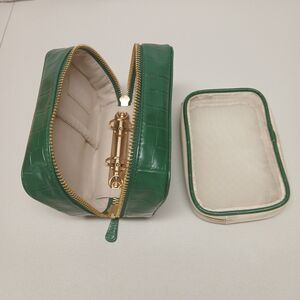 TRISH McEVOY Green Faux Leather Zip Up Croc Embossed Makeup Organizer Planner