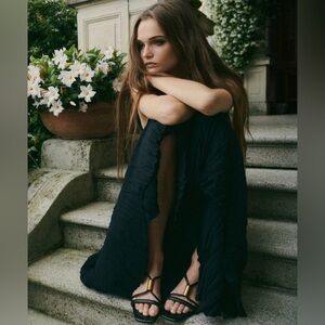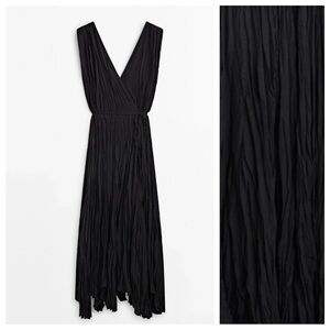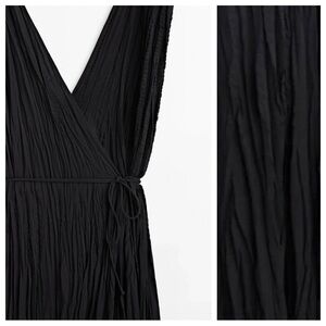 NWT. Massimo Dutti Black Pleated Wrap Dress with V-neckline, front tie closure. Size XS. Ref. 6699/122.Pit to pit 20" flat, length 53-57". 1036.