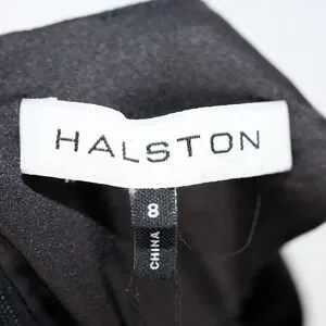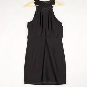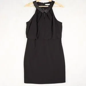 Halston Womens Black Halter Satin Trim Mini Cocktail Dress Front Key Hole Size 8