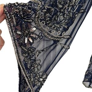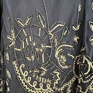 Draper’s and Damon’s Vintage Navy Blue Sheer Flowy Top Beaded Bell Sleeve Size Petite 8 RARE FIND 100% Silk Shell 100% Polyester Lining