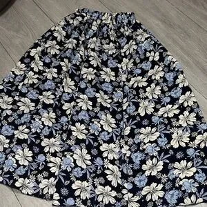Navy and Cream Floral A-Line Skirt size XS