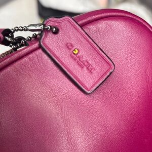 Chic Coach crossbody in vibrant magenta. Features a playful patch detail. Perfect for adding a pop of color.