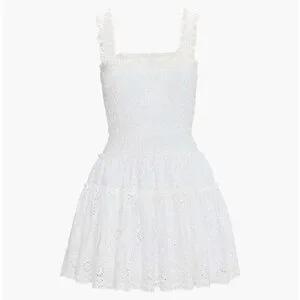 Hill House Home, The Nap Dress, Azalea Mini Nap Dress, White Trellis Broderie, white eyelet dress, embroidered cotton dress, smocked bodice dress, cottagecore dress, romantic summer dress, bridal shower dress, rehearsal dinner dress, bachelorette white dress, graduation dress, vacation dress, resort wear, spring summer dress, tiered mini dress, lace strap dress, scalloped hem dress, prairie dress, feminine silhouette, stretchy smocked top, breathable cotton dress, fully lined mini dress, white mini sundress, bridal white dress, classic white dress, sold out style, size XL dress, inclusive sizing, NWT dress