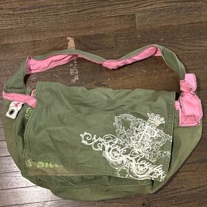 Cute cute cute PINK VS superrr vintage shoulder bag, nice and big, many pockets, the cutest sayings written all over it, pink and green iconic 00’s color combo