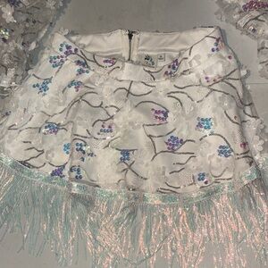 This charming set features a beautiful floral embellishment with delicate fringe details. The set comes in a lovely white color and is a size small. New without tags. No damages, everything in perfect condition.