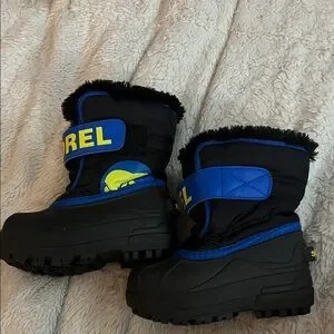 Sorel Black and Blue Kids' Boots with Yellow Accent