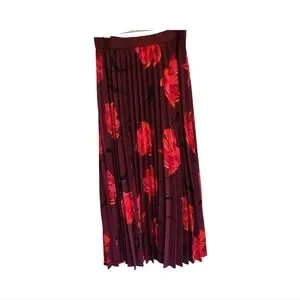 Elegant purple pleated skirt with a vibrant floral pattern. Perfect for any occasion. Very light weight. Easy to wear with elastic pull on design. in very good condition. Size xs. Waist 12.25", length is 33".