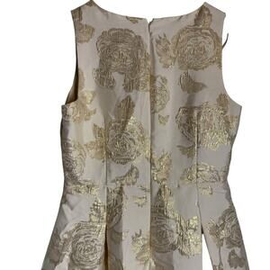 Eliza J Floral Jacquard Metallic Gold Fit & Flare Hi-Low Cocktail Dress Size 12