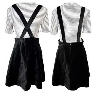 - A-line skirt, bib overall style