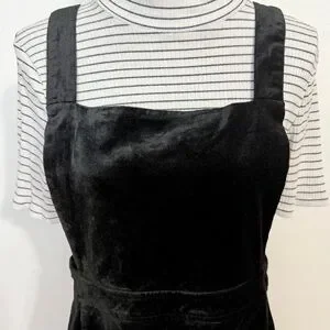 Beautiful deep black Velvet/Corduroy Square Neck bib dress