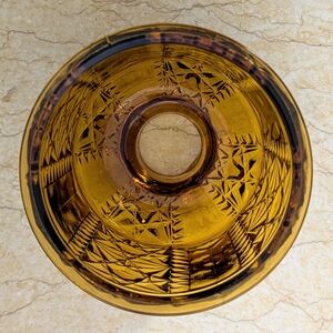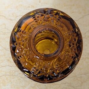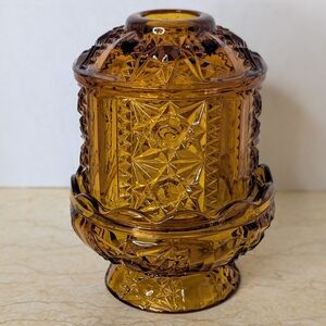 Vintage Indiana Glass Stars & Bars Amber Fairy Lamp Candle Holder