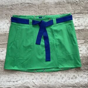 Stand out on the green with this vibrant lime green Nike Golf skort featuring a contrast blue tie-waist and a classic plaid pattern. Part of the Tour Performance line with moisture-wicking Dri-FIT technology.