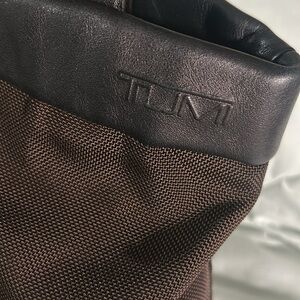 TUMI NYLON LEATHER dark brown black crossbody handbag