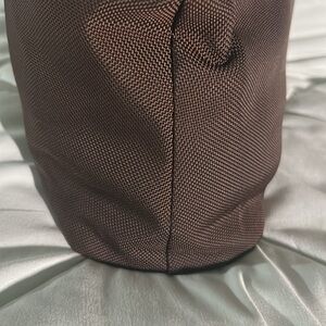 Beautiful condition measures 12 x 10” with a strap drop of 24 inches. No damages of any kind brown materials nylon black is black leather has removable strap no dust bag sorry.