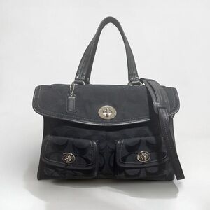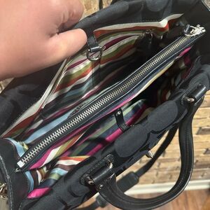 Excellent preloved condition. Canvas exterior has no rips/wear. Legacy stripe lining is clean. Inside- 2 big compartments and a zipper packet that can fit a laptop. Two functional front pockets and one on the back, all with turnlock closure. Silver hardware. Leather lining and adjustable strap. No odor.