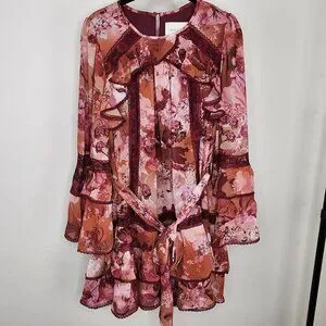 NWT BHLDN Camila Long Sleeve Chiffon Mini Dress Pink Medium