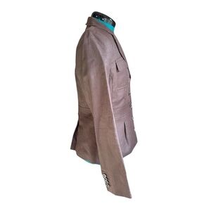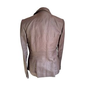 This Banana Republic blazer showcases a tailored silhouette with a notched lapel, crafted in a smooth brown finish. Its professional design makes it a versatile piece for both business and casual settings.