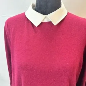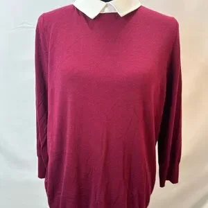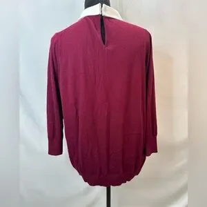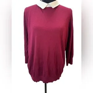 Ann Taylor Classic Burgundy Sweater with built in White Collar Size XL