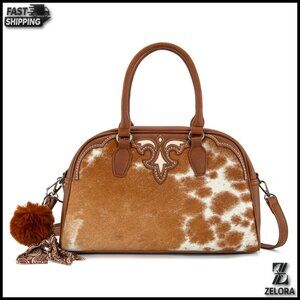 A sophisticated and elegant western-style mini duffel, crafted from genuine hair-on cowhide for a truly unique look. Perfect as a travel duffel bag or for daily crossbody wear.