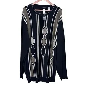 Keywords: Coogi Style, Grandpa Core, Retro, Hip Hop, Streetwear, Geometric, Abstract, 90s Fashion, Big and Tall, Wool Blend, Deadstock, NWT, Textured Knit, Cosby Sweater