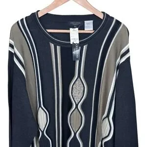VTG Cellini Sweater Size 2XLT Coogi Style Textured Cosby 3D Knit 90's Deadstock