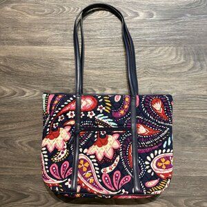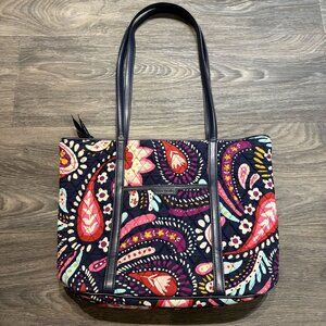 Vera Bradley Trimmed Traveler Tote Bag Purse Painted Paisley Multi Navy Zip Top