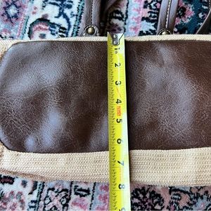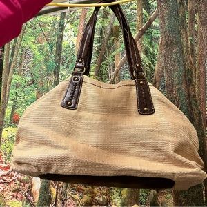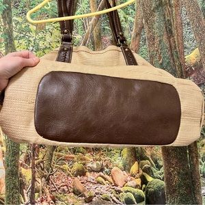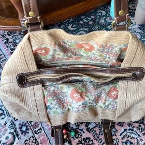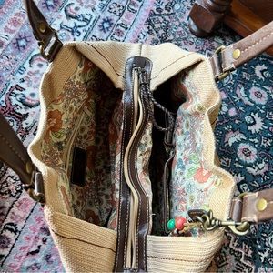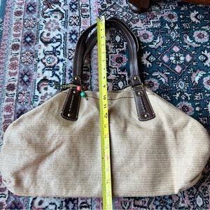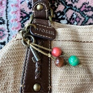 Beautiful burlap fabric, dark brown leather details, super cute keychain