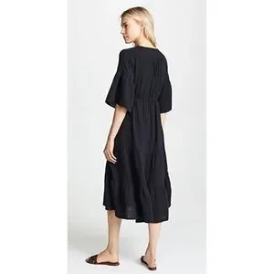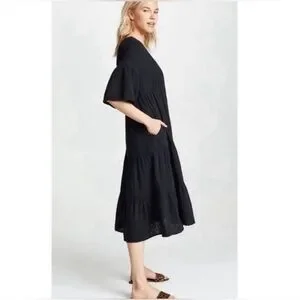 Xirena Black Kendall Tiered Midi Dress Size Large Cotton Gauze