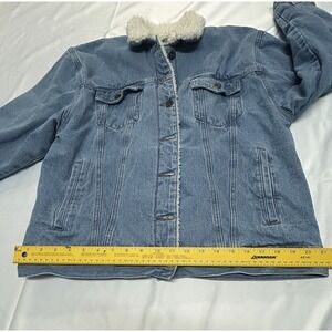 Womens Denim Jacket Button Up Fleece Lined with Pockets 100% Cotton Size 12