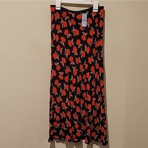 Stunning flowy a-line maxi skirt with vibrant red-orange poppies. ❤️ NWT! ANN TAYLOR FLORAL PRINT SIDE ZIP MAXI SKIRT, 0P (25 PETITE) Lined. Zipper on side with hook and eye clasp. Measurements are approximate and taken laying flat: 33" long, 12.5" waist. Excellent condition!
