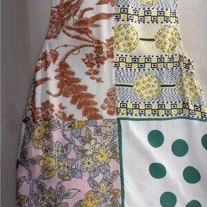 MOULINETTE SOEURS Anthropologie patchwork printed bow blouse top pink work