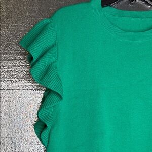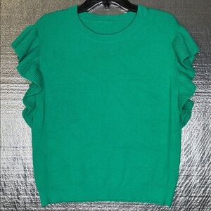 Source Unknown Green Ruffle Sleeve Sweater