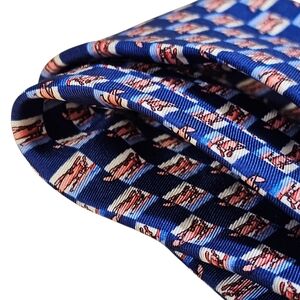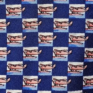 This is a beautiful pink and blue tie made by Dunhill. It is 100% silk and made in Italy. It is new without tags and in perfect condition. It has airplanes on it too!!! The tie box is included. Offers are highly encouraged. Thank you for looking.