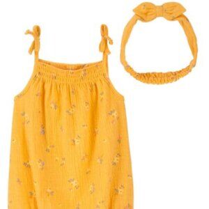 NWT Carter's Baby 2-Piece Floral Yellow Print Crinkle Jersey Bodysuit Set