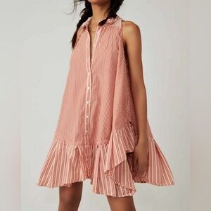 Free People Be Real Mini Dress Buttondown High Low Cotton Striped XS 265834