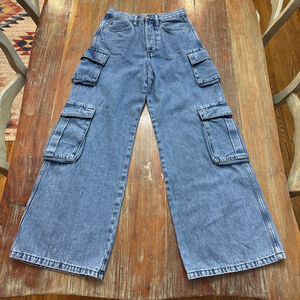 Favorite Daughter The Carly Shortie Cargo Wide Leg Jeans Size 24 Super Hi-Rise